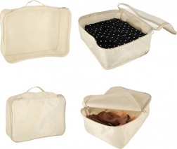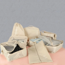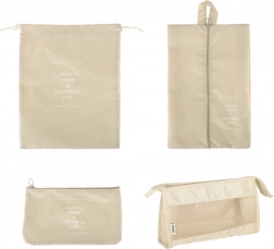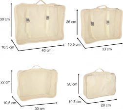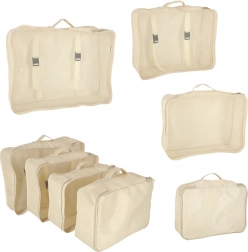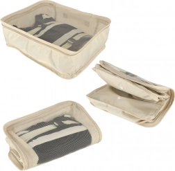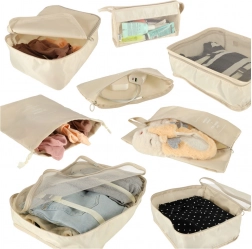 Organizatorji so izdelani iz lahkega in trpežnega poliestra, ki se enostavno čisti in dobro kljubuje umazaniji. Komplet je idealen za dopuste, službena potovanja in domače shranjevanje.