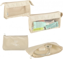 Del kompleta je samostojna vrečka za obutev z vrvico in manjši žepi za kozmetiko ter drobne predmete, da imate vse varno ločeno.