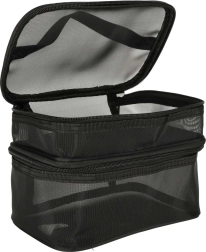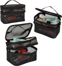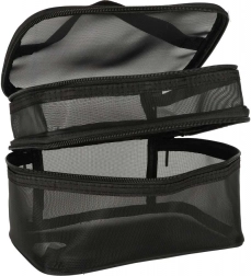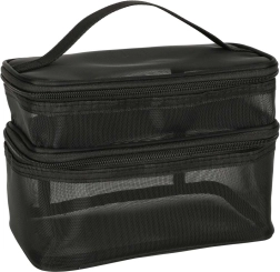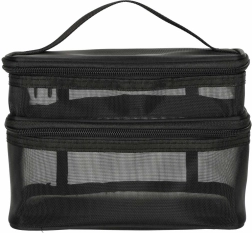 Potovalna kozmetična torbica je nujna spremljevalka vsakega potovanja. Dvonivojska zasnova omogoča urejen pregled in shranjevanje kozmetičnih pripomočkov. Zapiranje z dvosmerno zadrgo zagotavlja varnost in udobje pri uporabi. Torbica je izdelana iz zračnega materiala, ki omogoča, da zlahka najdete shranjene izdelke.