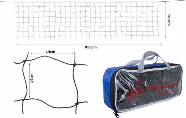 Odbojkarska mreža 9,5 × 1 m z napenjalno jeklenico in transportno torbo