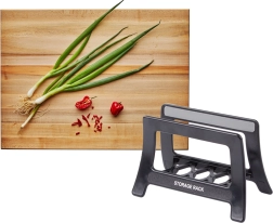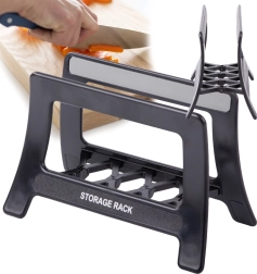 Praktična in učinkovita rešitev za ohranjanje reda v vaši kuhinji. To stojalo omogoča enostavno in hitro urejanje delovnega prostora. Dovolj je, da preprosto postavite desko ali pokrov in se zahvaljujoč samodejnemu zlaganju stojala prilagodi različnim velikostim in debelinam.