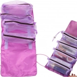 Prostorni, prozorni žepi vaše ličilo in dodatke ohranijo pregledne in varno shranjene. Vsak žep lahko zaradi ježka odstranite in preuredite.