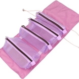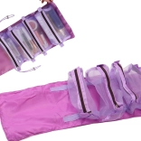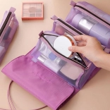 Brez več kaosa v toaletni torbici. Ta zvit kozmetični organizator 4 v 1 ponuja štiri prostorne, prozorne žepe na zadrgo, ki jih je zaradi ježka mogoče odstraniti in preurediti po potrebi. Po zlaganju se zategne z elastičnimi trakovi in trdno drži skupaj.