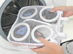 Gosta mrežica in zadrga ščitita obutev pred drgnjenjem in udarci ter hkrati preprečujeta poškodbe bobna pralnega stroja.