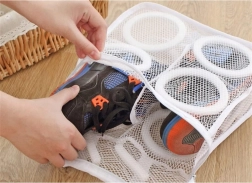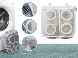 Vreča tudi preprečuje zapletanje vezalk in izgubo drobnih kosov perila. Po pranju jo lahko uporabite kot mrežo za sušenje – dovolj je, da jo obesite na zračno mesto in pospešite sušenje obutve. Lahek, prostorsko varčen in enostaven za čiščenje pomočnik za vsako gospodinjstvo.