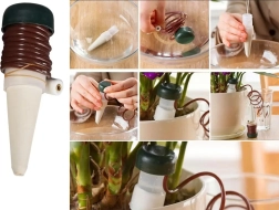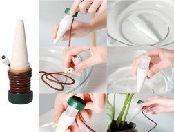 Ta samodejni namakalni sistem je zasnovan tako, da so vaše rastline stalno hidrirane, tudi ko niste doma. Keramične konice se namestijo v zemljo v cvetličnem lončku in zahvaljujoč pametnemu sistemu postopno sproščajo vodo. Ta metoda je idealna za tiste, ki nimajo časa za dnevno zalivanje rastlin, ali za tiste, ki potujejo in želijo biti prepričani, da njihove rastline dobijo potrebno nego.
