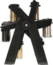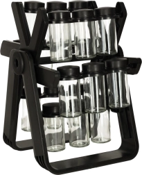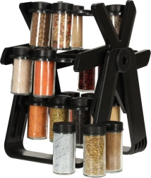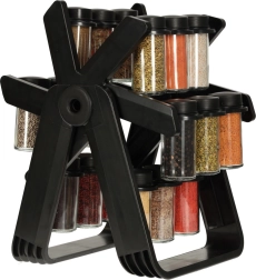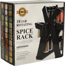 Vključuje 18 steklenih posod, ki ohranjajo začimbe sveže in enostavno dosegljive.