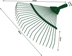 Praktične pahljačaste grablje s širokim delovnim zajemom 36 cm olajšajo vsakodnevno vzdrževanje trate in vrta. Barvana kovina zagotavlja dolgo življenjsko dobo in odpornost proti vremenskim vplivom, medtem ko nizka teža omogoča udobno delo tudi pri daljši uporabi.