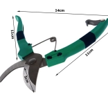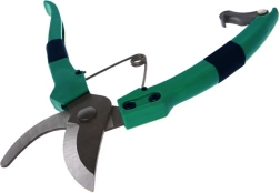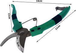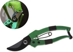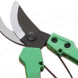 Vgrajena varnostna zapora preprečuje nenamerno odpiranje, medtem ko vzmetni mehanizem olajša ponavljajoče reze. Škarje se enostavno čistijo in vzdržujejo, zato so odlična izbira za domače vrtove, rastlinjake in sadovnjake.