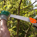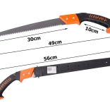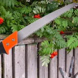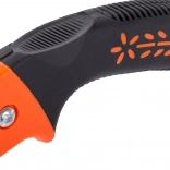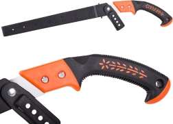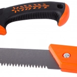 Ta ročna vrtna žaga je zanesljiv pomočnik za vzdrževanje dreves in grmovnic. Ostri zobje zagotavljajo hiter in čist rez tudi pri debelejših vejah, medtem ko oblikovan nedrseči ročaj zmanjšuje utrujenost rok in povečuje nadzor nad rezom. Zaradi kompaktnih dimenzij in nizke teže jo zlahka prenašate in shranite.