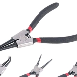 Celovit set klešč za varnostne obročke Seger za hitro in varno rokovanje z notranjimi in zunanjimi obročki. Kakovostno jekleno telo in udobni protidrsni ročaji povečajo zanesljivost prijema, medtem ko ravne in ukrivljene konice olajšajo delo v težje dostopnih mestih. Idealno za avto/moto delavnice, industrijo in domače delavnice.