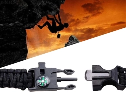 Izboljšajte svoje aktivnosti na prostem z našo preživetveno zapestnico. Ta zapestnica, izdelana iz odpornega paracorda, vsebuje: