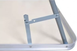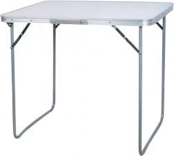 Kombinacija MDF plošče in kovinske konstrukcije (aluminij, železo) zagotavlja stabilnost in odpornost proti običajni obrabi. Miza je odlična za kampiranje, piknike, žar ter kot provizorična delovna površina na balkonu ali vrtu.