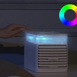 Mini klimatska naprava je odlična za sončne dni doma ali v službi. Ta majhna naprava lahko znatno zmanjša temperaturo v prostoru. Zaradi svojih majhnih dimenzij jo lahko postavite na mizo, omaro ali pult. Klimatska naprava ima lahko barvno osvetlitev, ki sveti z menjavanjem barv.