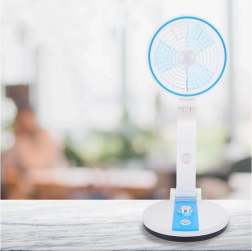 Poskrbite za prijetno klimo kjerkoli. Ta zložljiv brezžični ventilator v elegantni modri barvi združuje zmogljivo, a tiho hlajenje z uporabno LED osvetlitvijo. S stopenjsko regulacijo hitrosti zlahka prilagodite pretok zraka trenutnim potrebam – od nežnega vetriča do intenzivnejše osvežitve.