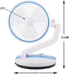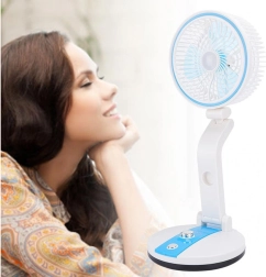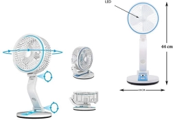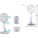 Kompakten in prenosljiv namizni ventilator z integrirano LED svetlobo prinaša osvežitev doma, v pisarni in na poti. Zahvaljujoč USB polnjenju in vgrajeni bateriji nudi pravo svobodo brez kablov. Uživajte v tihem delovanju, stopenjskem nastavljanju hitrosti in nastavljivem naklonu za usmerjen pretok zraka, dopolnjenem z 8 LED diodami za praktično osvetlitev.