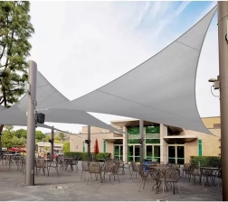 Trikotna oblika 4 × 4 × 4 m ustvari prijetno senco nad sedežnim kotičkom na terasi ali na vrtu. Material zmanjšuje pregrevanje in omogoča kroženje zraka.