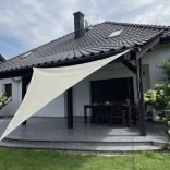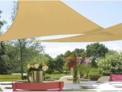 Zahvaljujoč različnim možnostim namestitve lahko jadrovino napnete pod različnimi koti glede na gibanje sonca in razporeditev prostora. Na vogalih so trdni inox obročki, v paketu pa so priložene tudi pritrditvene vrvice, zato je montaža hitra in intuitivna. Bež barva se elegantno zlije z vsakim zunanjim prostorom.