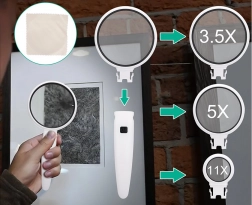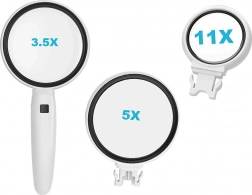 Izberite idealno povečavo 3,5x, 5x ali 11x glede na trenutno potrebo. Menjava je hitra in intuitivna, zato zlahka preidete od branja k natančnemu pregledu drobnih predmetov.