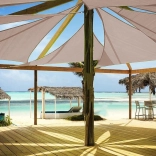 Namestitev je hitra in prilagodljiva – jadrovino preprosto napnete med stene, stebričke ali drevesa, kot pritrditve pa prilagodite želeni senci in pretoku zraka. Idealna nad sedišči, otroškimi igrišči, bazeni, peskovniki ter za gostinske vrtove.