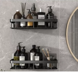 Maksimirajte prostor za shranjevanje pod prho ali ob umivalniku. Komplet vsebuje 2 prostorni polici za šampone, balzame in gele ter tudi dodatne kavlje za obešanje dodatkov. Lahka, a izjemno trpežna aluminijasta konstrukcija kljubuje vlagi in koroziji – idealna za uporabo neposredno v pršni kabini.