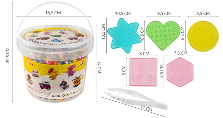 Ta bogat set zalikalnih perlic je idealen za ustvarjanje doma in v vrtcih. V paketu najdete 5000 perlic v desetih osnovnih barvah, priročne šablone in dodatke, s katerimi otroci zlahka ustvarijo pisane slike, like in živalice. Z dodajanjem več plasti lahko izdelate tudi 3D modele. Lahka in kompaktna embalaža v vedriču z zapiralnim pokrovom omogoča enostavno prenašanje in shranjevanje.