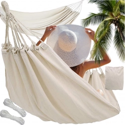 Ta prostorna viseča mreža vam nudi odličen prostor za sprostitev po delu ali za vikend poležavanje. Zračna platnena tkanina prijetno objame telo, hkrati pa je dovolj čvrsta in stabilna. Zaradi kompaktne embalaže in majhne teže mrežo zlahka vzamete na vikend, k jezeru ali v park.