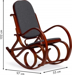 Premišljena konstrukcija je zasnovana za stabilno in tekoče guganje. Posebne končne »nogice« na smučkah preprečujejo prekomerno prevrnitev, zato si lahko privoščite varen počitek. Odporna tkanina je prijetna na dotik in enostavna za vzdrževanje, da vam bo stol dolgo v veselje.