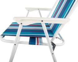 Široki nasloni za roke in prijetna tkanina sedala ter naslonjala zagotavljajo udobje skozi ves dan ob vodi ali v kampu.