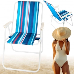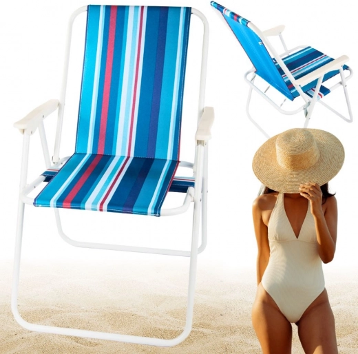 Ta zložljiv plažni stol združuje nizko težo, enostavno prenašanje in preverjeno udobje. Prašno lakiran jekleni okvir zagotavlja stabilnost, medtem ko je odporna tkanina sedala in naslonjala prijetna na dotik in enostavna za čiščenje. Udobni nasloni za roke podpirajo sprostitev tudi pri daljšem sedenju.