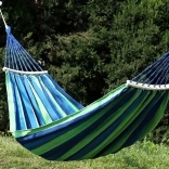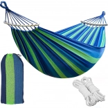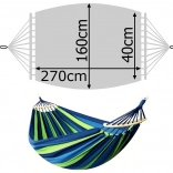 Ta viseča mreža je zasnovana z mislijo na maksimalno udobje in vzdržljivost. Izdelana je iz odpornega bombaža z dodatkom poliestra, kar zagotavlja stabilno in zračno konstrukcijo. Idealna za branje, sprostitev ali nežno guganje v naravi.