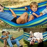 Visečo mrežo lahko preprosto obesite z dvema priloženima vrvicama na drevesa ali druge stabilne strukture. Njena uporaba je prilagodljiva in enostavna, doma ali na dopustu.