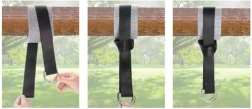 Komplet namestite v nekaj minutah – dovolj je, da ovijete trakove/vrvi in jih zavarujete s karabinami. Brez orodja, brez poškodb površin.