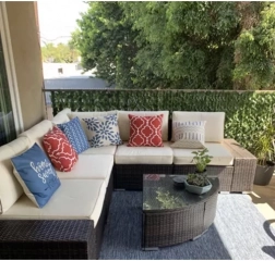 Ta umetna bršljanova ograja je idealna kot vizualna zaščita za balkon, teraso ali ograjo. Realističen učinek listov prinese v zunanjost prijetno zelenje brez skrbi – brez zalivanja, gnojenja in obrezovanja. Konstrukcija iz kakovostnih materialov je odporna na vremenske vplive in se preprosto vzdržuje čista.