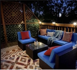 Kombinacija poliestra in PP zagotavlja dolgo življenjsko dobo ter odpornost na vremenske vplive na balkonih, terasah in vrtovih.