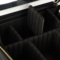 Prilagodljiva razporeditev predalčkov ter žep za čopiče ali šminke za popoln red na poti.