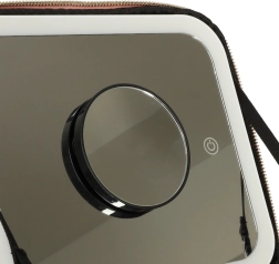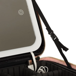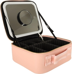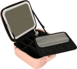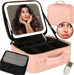 Rožnata kozmetična torbica je idealna za potovanja in vsakodnevno uporabo. Zahvaljujoč LED ogledalu z upravljanjem na dotik in 10× povečavnemu ogledalu boste ličila uredili natančno tudi v slabših svetlobnih pogojih. Notranji prilagodljivi predelki in žep za čopiče ali šminke ohranjajo vse popolnoma organizirano.