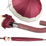 Iščete velik in vzdržljiv dežnik, ki vas ne bo pustil na cedilu? Ta eleganten model združuje trdnost, udobje in slog. Šestnajst prožnih ramen iz polikarbonatnih vlaken ter ojačana konstrukcija zagotavljata stabilnost tudi v sunkovitem vetru, medtem ko protizdrsni oblikovani ročaj nudi zanesljiv oprijem.