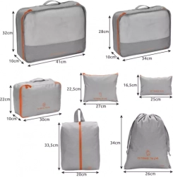 Naš set potovalnih organizatorjev omogoča maksimalno učinkovitost pri pakiranju. Izkoristite sedem različno velikih in oblikovanih torb za organizacijo spodnjega perila, obutve, kozmetike ali elektronike.