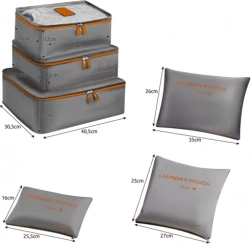 Organizirajte svoj kovček ali hotelsko sobo s šestimi organizatorji različne velikosti in namena. Razporedite prostor za oblačila, kozmetiko ali elektroniko in prihranite več prostora.