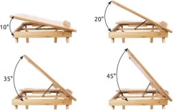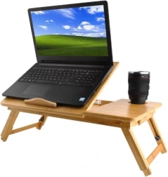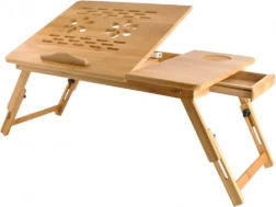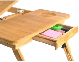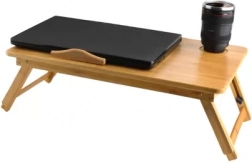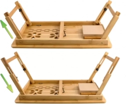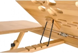 Stabilno ogrodje iz naravnega bambusa dopolnjuje praktičen zaustavnik proti zdrsu pri naklonu, integriran predalček za svinčnike, slušalke ali USB-ključek ter tudi držalo za skodelico pri izbranih različicah. Zložljive noge olajšajo prenašanje in shranjevanje. Odlična rešitev za posteljo, kavč, pa tudi za vlak, avtobus ali letalo.