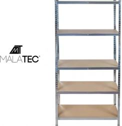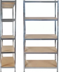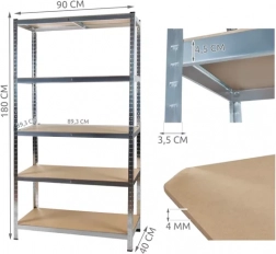 Stabilen regal iz pocinkanega jekla in debelih MDF polic prenese visoke obremenitve in vsakodnevno uporabo. Vsaka polica je ojačana s prečko za večjo stabilnost, gumijaste kapice na nogah ščitijo tla in preprečujejo drsenje. Zahvaljujoč odprtinam na vsakih 3 cm zlahka nastavite višino polic natančno glede na shranjene predmete.