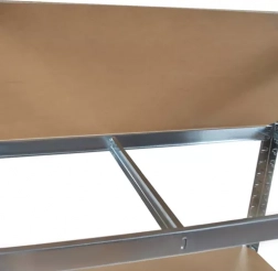 Pocinkano jeklo 0,65 mm in MDF 4 mm. Proti zdrsne kapice na nogah ščitijo tla in povečujejo varnost.