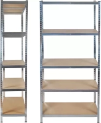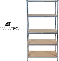 Robustna skladiščna polica MALATEC z merami 220 × 100 × 45 cm ponuja 5 nastavljivih polic iz MDF in pocinkan jeklen okvir z visoko stabilnostjo. Vsaka polica prenese do 175 kg (skupaj 875 kg), montaža je brez vijakov in hitra. Idealno za garažo, klet, delavnico in skladišče.