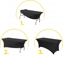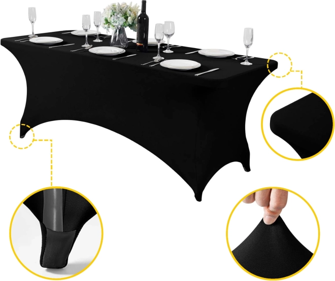 Elastična mešanica poliestra in spandeksa se prilagodi 180 cm mizám ter ustvari gladko, brezhibno površino brez pregibov in brez likanja.