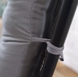 Posebni naborki na naslonjalu in pritrdilne vrvice zagotavljajo, da vzglavnik ostane trdno na svojem mestu.