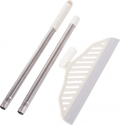 Široka glava s prožnim gumijastim robom popolnoma prilega površini in učinkovito odvaja vodo s keramike, stekla in ogledal.