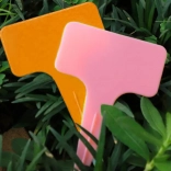 T‑oblika nudi dovolj prostora za imena rastlin, termine setve in opombe o negi. Primerno za pisanje s flomastrom ali peresom.