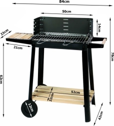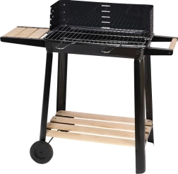 Žar je opremljen z nastavljivo rešetko, ki jo lahko nastavite na pet različnih nivojev, kar omogoča brezhibno pripravo jedi glede na vaše želje. Lesene police ob strani zagotavljajo dovolj prostora za pripravo.
