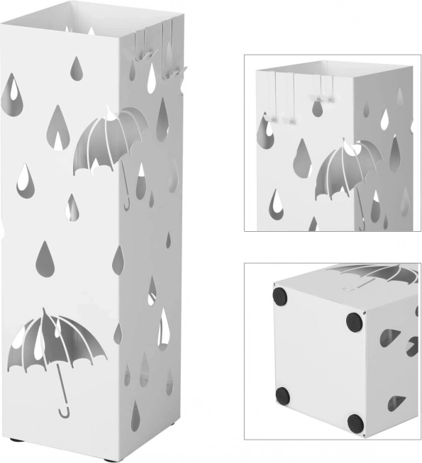 Opremljeno s protizdrsnimi blazinicami stojalo ščiti tla pred poškodbami in vlago. Odstranljiva plastična posoda za vodo poskrbi, da vsa voda z mokrih dežnikov ostane v odkapniku.